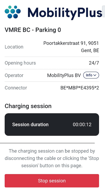 To stop the charging session afterwards, tap Stop session or remove the charging cable from the car and the charging station.