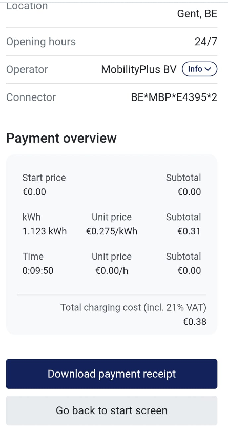 From the moment the charging session ends, the total cost of the charging session is displayed.