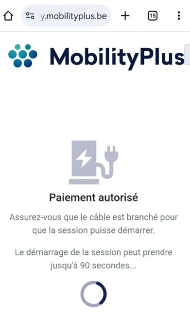 Vous avez 90 secondes pour connecter le câble de recharge pour démarrer la session de recharge.